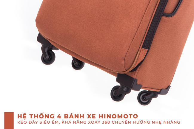 Ngoài ra, vỏ bánh xe làm bằng cao su thiên nhiên đúc nguyên khối hạn chế ma sát với mặt đường, bao quanh khung nhựa lõi cốt thép chắc chắn, chịu tải trọng của hành lý rất tốt.