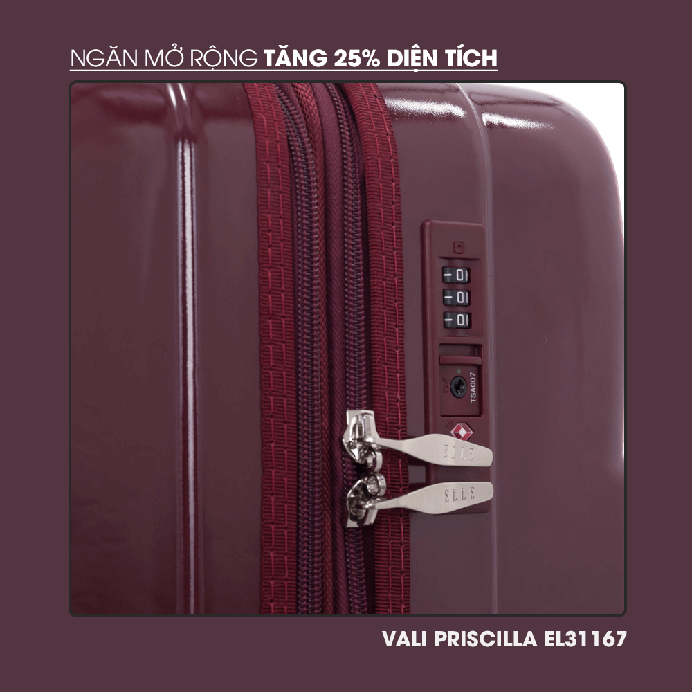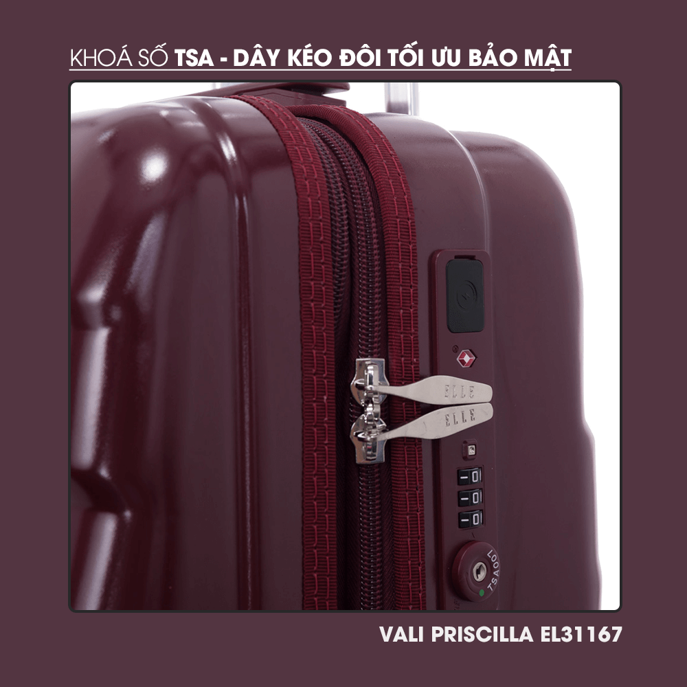 Được trang bị khoá số TSA đạt tiêu chuẩn an ninh Hoa Kỳ, Vali Elle Priscilla EL31167 còn được tối ưu bảo mật bởi hệ thống khoá kéo đôi chắc chắn và chống rạch trộm hiệu quả.