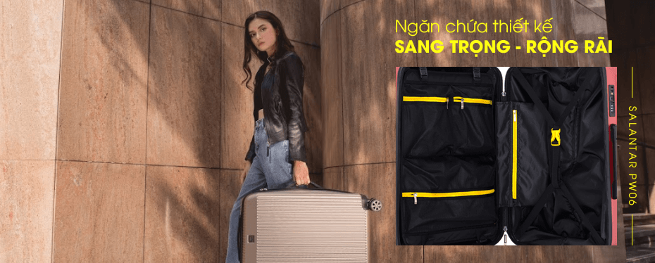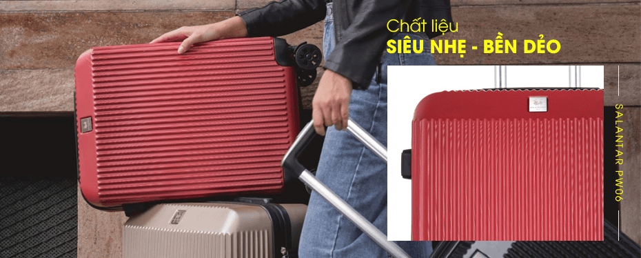 Vali du lịch Salantar PW06 được làm từ chất liệu nhựa ABS + PC, với đặc tính siêu nhẹ, khả năng chống trầy cao, đàn hồi tốt chỉ với 2,7 kg và sức chứa lên đến 12kg cho size 20 để bạn thỏa thích chứa đựng hành lý của mình trong chuyến đi của mình. Ngoài ra chất liệu này rất sáng đẹp, làm tăng tính thẩm mỹ cho sản phẩm cao cấp.