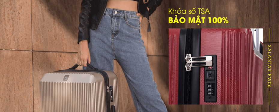 Vali du lịch Salantar PW06 sở hữu bộ dây kéo êm ái mượt mà cùng hệ thống khóa số TSA được Cục An Ninh Hoa Kì chứng nhận đảm bảo an toàn cho hành lý bên trong vali, với chức năng chống dò với 3 bánh răng chắc chắn, độ khó và bảo mật của vali sẽ tăng lên gấp 3 lần, giúp bạn an tâm trước mọi tình huống kiểm tra an ninh mà không phải cắt hay phá bỏ khoá từ nhân viên an ninh sân bay.
