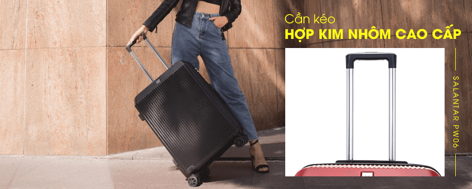 Cần kéo của vali Salantar được làm từ hợp kim nhôm với trọng lượng nhẹ nhưng đem lại sự chắc chắn cao. Cần kéo có thể thay đổi chiều dài phù hợp size vali và vóc dáng người sử dụng rất tiện lợi.